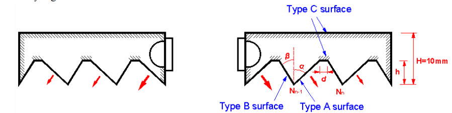 • Surface property: TIR for type A surface; TIR 100% reflectance for type B surfaces; lambertian scattering (93% reflectance) for type C surfaces.
