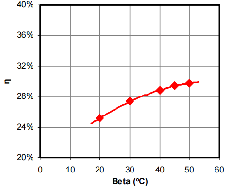 Figure 8: The efficiency of the light guides as a function of beta angle.
