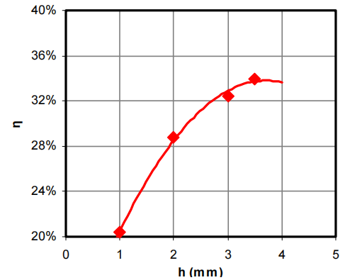 Figure 9: The efficiency of the light guides as a function of prism height.
