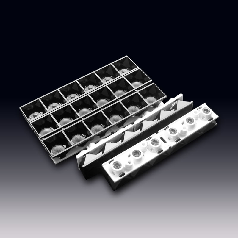 The LGM optics PMMA lens for linear lighting, with dimensions L107.6 x W18.5 x H17.2mm, has the same dimensions and comes preassembled in lightweight, durable holders that make their installation fast and easy. The HX-LGM Series family has a wide selection of beams from narrow to wide flood. Perfectly compatible with CREE, OSRAM, Lumileds, Samsung 2525, 3030, 3535 LEDs, etc. Widely used in basketball court lighting, gymnasium lighting, badminton court lighting, volleyball court lighting, underwater lighting, outdoor landscape lighting (or lens), security equipment, traffic display lighting (or lens), electronic components, automotive lamp lenses, beam lamp lenses, and stage lighting.
