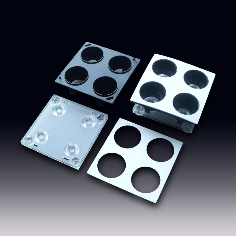 The HX-XMxx Series of optical LED lenses: 2-tone optical module, using a lens + louver + face cover design. Equipped with a white face cover that can blend perfectly with the white ceiling. Louver split design, glare rating less than 9 (UGR<9), providing more combinations. All subfamilies have the same dimensions and come preassembled in lightweight, durable holders with fastening tape that makes their installation fast and easy. The HX-XMxx Series family has a wide selection of beams from narrow to wide flood. Perfectly compatible with COB LEDs such as Bridgelux, Citizen, Cree, Osram, Samsung, Lumileds, LEXTAR, etc. Widely used in basketball court lighting, gymnasium lighting, badminton court lighting, volleyball court lighting, underwater lighting, outdoor landscape lighting (or lens), security equipment, traffic display lighting (or lens), electronic components, automotive lamp lenses, beam lamp lenses, and stage lighting.
